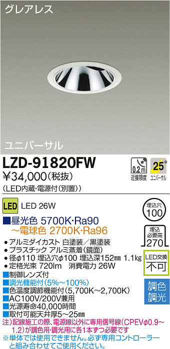 ¢£À©¸æ¥ì¥ó¥ºÉÕ|¢£Ä´¸÷µ¡Ç½ÉÕ¡Ê5¡ó¡Á100¡ó¡Ë|¢£¿§²¹ÅÙÄ´ÀᵡǽÉÕ¡Ê5¡¤700K¡Á2¡¤700K¡Ë|¢£AC100V/200V·óÍÑ|¢£¸÷¸»¼÷Ì¿40¡¤000»þ´Ö|¢£¼èÉÕ²Äǽŷ°æ¸ü5¡Á25mm|Ãí¡ËÇÛÀþ»Ü¹©¤ÎºÝ¡¢ÅŸ»Àþ°Ê³°¤ËÀìÍÑ¿®¹æÀþ¡ÊCPEV¦Õ0.9¡Á1.2¡Ë¤¬Ä´¿§ÍÑ¡¦Ä´¸÷ÍѤ˳Æ1Ëܤº¤ÄɬÍפǤ¹|¢¨Ã±ÂΤǤϻÈÍѤǤ¤Þ¤»¤ó¡£É¬¤ºÀìÍÑ¥³¥ó¥È¥í¡¼¥é¡¼¤ÈÁȤ߹ç¤ï¤»¤Æ¤´»ÈÍѤ¯¤À¤µ¤¤¡£|Äê³Ê¸÷« 720lm¡¡¾ÃÈñÅÅÎÏ 26W|Ra90/Ra96