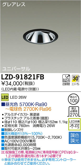¢£À©¸æ¥ì¥ó¥ºÉÕ|¢£Ä´¸÷µ¡Ç½ÉÕ¡Ê5¡ó¡Á100¡ó¡Ë|¢£¿§²¹ÅÙÄ´ÀᵡǽÉÕ¡Ê5¡¤700K¡Á2¡¤700K¡Ë|¢£AC100V/200V·óÍÑ|¢£¸÷¸»¼÷Ì¿40¡¤000»þ´Ö|¢£¼èÉÕ²Äǽŷ°æ¸ü5¡Á25mm|Ãí¡ËÇÛÀþ»Ü¹©¤ÎºÝ¡¢ÅŸ»Àþ°Ê³°¤ËÀìÍÑ¿®¹æÀþ¡ÊCPEV¦Õ0.9¡Á1.2¡Ë¤¬Ä´¿§ÍÑ¡¦Ä´¸÷ÍѤ˳Æ1Ëܤº¤ÄɬÍפǤ¹|¢¨Ã±ÂΤǤϻÈÍѤǤ¤Þ¤»¤ó¡£É¬¤ºÀìÍÑ¥³¥ó¥È¥í¡¼¥é¡¼¤ÈÁȤ߹ç¤ï¤»¤Æ¤´»ÈÍѤ¯¤À¤µ¤¤¡£|Äê³Ê¸÷« 760lm¡¡¾ÃÈñÅÅÎÏ 26W|Ra90/Ra96