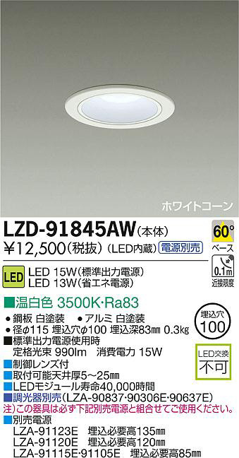 ¢£À©¸æ¥ì¥ó¥ºÉÕ|¢£¼èÉÕ²Äǽŷ°æ¸ü5¡Á25mm|¢£LED¥â¥¸¥å¡¼¥ë¼÷Ì¿40¡¤000»þ´Ö|¢£Ä´¸÷´ïÊÌÇä¡ÊLZA-90837¡¦90306E¡¦90637E¡Ë|Ãí¡Ë¤³¤Î´ï¶ñ¤Ïɬ¤º²¼µÊÌÇäÅŸ»¤ÈÁȹ礻¤Æ¤´»ÈÍѤ¯¤À¤µ¤¤¡£|¢£ÊÌÇäÅŸ»¡¡LZA-91123E¡¡Ëä¹þɬÍ×¹â135mm¡¡LZA-91120E¡¡Ëä¹þɬÍ×¹â120mm¡¡LZA-91115E¡¦91105E¡¡Ëä¹þɬÍ×¹â85mm|¢£É¸½à½ÐÎÏÅŸ»»ÈÍÑ»þ¡¡Äê³Ê¸÷« 990lm¡¡¾ÃÈñÅÅÎÏ 15W|Ra83