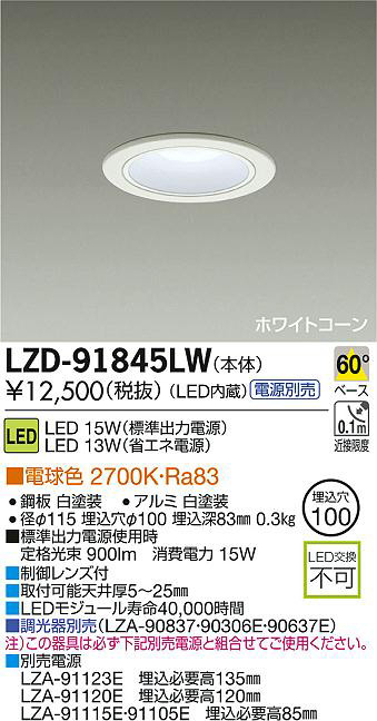¢£À©¸æ¥ì¥ó¥ºÉÕ|¢£¼èÉÕ²Äǽŷ°æ¸ü5¡Á25mm|¢£LED¥â¥¸¥å¡¼¥ë¼÷Ì¿40¡¤000»þ´Ö|¢£Ä´¸÷´ïÊÌÇä¡ÊLZA-90837¡¦90306E¡¦90637E¡Ë|Ãí¡Ë¤³¤Î´ï¶ñ¤Ïɬ¤º²¼µÊÌÇäÅŸ»¤ÈÁȹ礻¤Æ¤´»ÈÍѤ¯¤À¤µ¤¤¡£|¢£ÊÌÇäÅŸ»¡¡LZA-91123E¡¡Ëä¹þɬÍ×¹â135mm¡¡LZA-91120E¡¡Ëä¹þɬÍ×¹â120mm¡¡LZA-91115E¡¦91105E¡¡Ëä¹þɬÍ×¹â85mm|¢£É¸½à½ÐÎÏÅŸ»»ÈÍÑ»þ¡¡Äê³Ê¸÷« 900lm¡¡¾ÃÈñÅÅÎÏ 15W|Ra83
