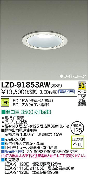 ¢£À©¸æ¥ì¥ó¥ºÉÕ|¢£¼èÉÕ²Äǽŷ°æ¸ü5¡Á25mm|¢£LED¥â¥¸¥å¡¼¥ë¼÷Ì¿40¡¤000»þ´Ö|¢£Ä´¸÷´ïÊÌÇä¡ÊLZA-90837¡¦90306E¡¦90637E¡Ë|Ãí¡Ë¤³¤Î´ï¶ñ¤Ïɬ¤º²¼µÊÌÇäÅŸ»¤ÈÁȹ礻¤Æ¤´»ÈÍѤ¯¤À¤µ¤¤¡£|¢£ÊÌÇäÅŸ»¡¡LZA-91123E¡¡Ëä¹þɬÍ×¹â125mm¡¡LZA-91115E¡¦91105E¡¡Ëä¹þɬÍ×¹â86mm¡¡LZA-91120E¡¡Ëä¹þɬÍ×¹â95mm|¢£É¸½à½ÐÎÏÅŸ»»ÈÍÑ»þ¡¡Äê³Ê¸÷« 1000lm¡¡¾ÃÈñÅÅÎÏ 15W|Ra83