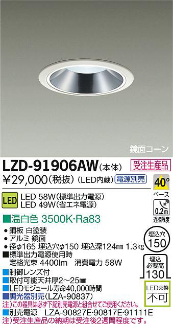 ¢£À©¸æ¥ì¥ó¥ºÉÕ|¢£¼èÉÕ²Äǽŷ°æ¸ü2¡Á25mm|¢£LED¥â¥¸¥å¡¼¥ë¼÷Ì¿40¡¤000»þ´Ö|¢£Ä´¸÷´ïÊÌÇä¡ÊLZA-90837¡Ë|Ãí¡Ë¤³¤Î´ï¶ñ¤Ïɬ¤º²¼µÊÌÇäÅŸ»¤ÈÁȹ礻¤Æ¤´»ÈÍѤ¯¤À¤µ¤¤¡£|¢£ÊÌÇäÅŸ»¡¡LZA-90827E¡¦90817E¡¦91111E|Ãí¡Ë¼õÃíÀ¸»ºÉʤÎǼ´ü¤Ï¼õÃí¸å2½µ´ÖÄøÅ٤Ǥ¹¡£|¢£É¸½à½ÐÎÏÅŸ»»ÈÍÑ»þ¡¡Äê³Ê¸÷« 4400lm¡¡¾ÃÈñÅÅÎÏ 58W|Ra83