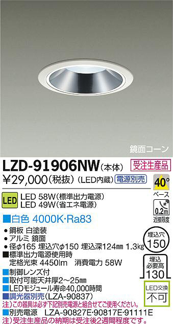 ¢£À©¸æ¥ì¥ó¥ºÉÕ|¢£¼èÉÕ²Äǽŷ°æ¸ü2¡Á25mm|¢£LED¥â¥¸¥å¡¼¥ë¼÷Ì¿40¡¤000»þ´Ö|¢£Ä´¸÷´ïÊÌÇä¡ÊLZA-90837¡Ë|Ãí¡Ë¤³¤Î´ï¶ñ¤Ïɬ¤º²¼µÊÌÇäÅŸ»¤ÈÁȹ礻¤Æ¤´»ÈÍѤ¯¤À¤µ¤¤¡£|¢£ÊÌÇäÅŸ»¡¡LZA-90827E¡¦90817E¡¦91111E|Ãí¡Ë¼õÃíÀ¸»ºÉʤÎǼ´ü¤Ï¼õÃí¸å2½µ´ÖÄøÅ٤Ǥ¹¡£|¢£É¸½à½ÐÎÏÅŸ»»ÈÍÑ»þ¡¡Äê³Ê¸÷« 4450lm¡¡¾ÃÈñÅÅÎÏ 58W|Ra83