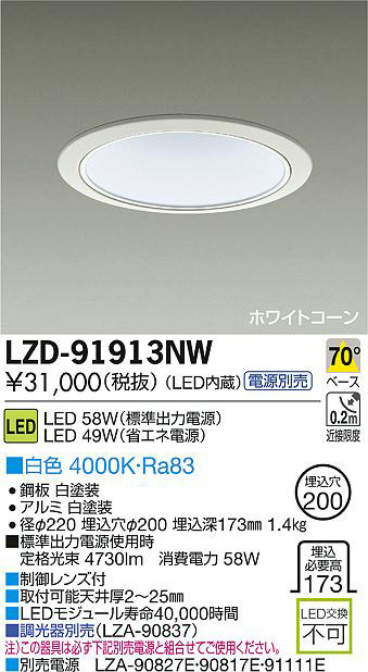 DAIKO Âç¸÷Åŵ¡ LED¥À¥¦¥ó¥é¥¤¥È LZD-91913NW
