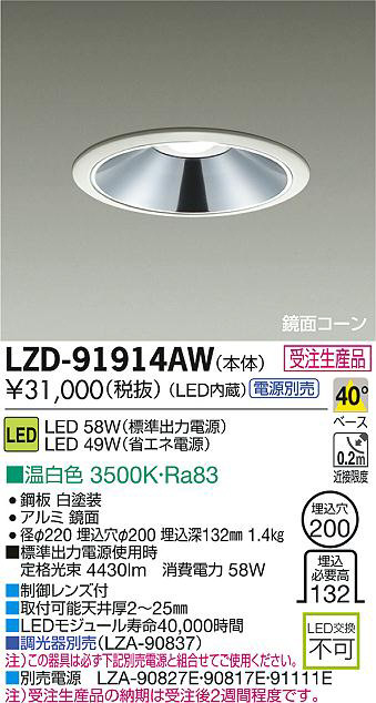 ¢£À©¸æ¥ì¥ó¥ºÉÕ|¢£¼èÉÕ²Äǽŷ°æ¸ü2¡Á25mm|¢£LED¥â¥¸¥å¡¼¥ë¼÷Ì¿40¡¤000»þ´Ö|¢£Ä´¸÷´ïÊÌÇä¡ÊLZA-90837¡Ë|Ãí¡Ë¤³¤Î´ï¶ñ¤Ïɬ¤º²¼µÊÌÇäÅŸ»¤ÈÁȹ礻¤Æ¤´»ÈÍѤ¯¤À¤µ¤¤¡£|¢£ÊÌÇäÅŸ»¡¡LZA-90827E¡¦90817E¡¦91111E|Ãí¡Ë¼õÃíÀ¸»ºÉʤÎǼ´ü¤Ï¼õÃí¸å2½µ´ÖÄøÅ٤Ǥ¹¡£|¢£É¸½à½ÐÎÏÅŸ»»ÈÍÑ»þ¡¡Äê³Ê¸÷« 4430lm¡¡¾ÃÈñÅÅÎÏ 58W|Ra83