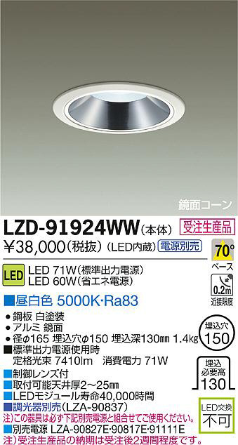 ¢£À©¸æ¥ì¥ó¥ºÉÕ|¢£¼èÉÕ²Äǽŷ°æ¸ü2¡Á25mm|¢£LED¥â¥¸¥å¡¼¥ë¼÷Ì¿40¡¤000»þ´Ö|¢£Ä´¸÷´ïÊÌÇä¡ÊLZA-90837¡Ë|Ãí¡Ë¤³¤Î´ï¶ñ¤Ïɬ¤º²¼µÊÌÇäÅŸ»¤ÈÁȹ礻¤Æ¤´»ÈÍѤ¯¤À¤µ¤¤¡£|¢£ÊÌÇäÅŸ» LZA-90827E¡¦90817E¡¦91111E|Ãí¡Ë¼õÃíÀ¸»ºÉʤÎǼ´ü¤Ï¼õÃí¸å2½µ´ÖÄøÅ٤Ǥ¹¡£|¢£É¸½à½ÐÎÏÅŸ»»ÈÍÑ»þ¡¡Äê³Ê¸÷« 7410lm¡¡¾ÃÈñÅÅÎÏ 71W|Ra83