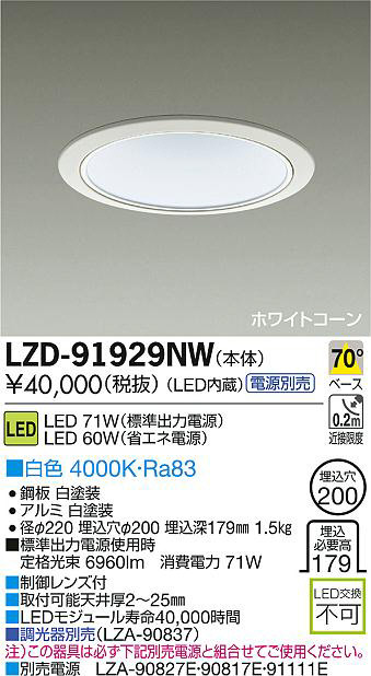 DAIKO Âç¸÷Åŵ¡ LED¥À¥¦¥ó¥é¥¤¥È LZD-91929NW