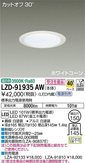 ¢£ÊÌÇäÅŸ»¡¡LZA-92133 ¡ï18¡¤000¡¡LZA-91810 ¡ï18¡¤000¡¢Ãí¡Ë¼õÃíÀ¸»ºÉʤÎǼ´ü¤Ï¼õÃí¸å£²½µ´ÖÄøÅ٤Ǥ¹¡£¡¢É¸½à½ÐÎÏÅŸ»»ÈÍÑ»þ Äê³Ê¸÷« 8000lm ¾ÃÈñÅÅÎÏ 101W¡¢Ra83