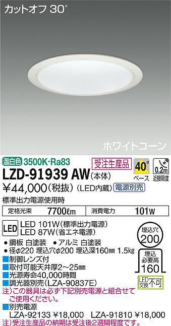 ¢£ÊÌÇäÅŸ»¡¡LZA-92133 ¡ï18¡¤000¡¡LZA-91810 ¡ï18¡¤000¡¢Ãí¡Ë¼õÃíÀ¸»ºÉʤÎǼ´ü¤Ï¼õÃí¸å£²½µ´ÖÄøÅ٤Ǥ¹¡£¡¢É¸½à½ÐÎÏÅŸ»»ÈÍÑ»þ Äê³Ê¸÷« 7700lm ¾ÃÈñÅÅÎÏ 101W¡¢Ra83