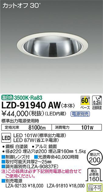 ¢£ÊÌÇäÅŸ»¡¡LZA-92133 ¡ï18¡¤000¡¡LZA-91810 ¡ï18¡¤000¡¢É¸½à½ÐÎÏÅŸ»»ÈÍÑ»þ Äê³Ê¸÷« 8100lm ¾ÃÈñÅÅÎÏ 101W¡¢Ra83
