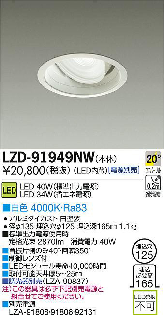 DAIKO Âç¸÷Åŵ¡ LED¥æ¥Ë¥Ð¡¼¥µ¥ë¥À¥¦¥ó¥é¥¤¥È LZD-91949NW