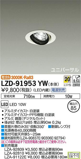 DAIKO Âç¸÷Åŵ¡ ¥æ¥Ë¥Ð¡¼¥µ¥ë¥À¥¦¥ó¥é¥¤¥È LZD-91953YW