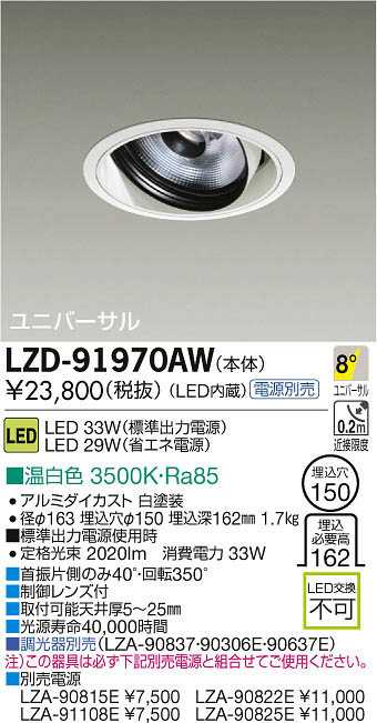 ¢£¼ó¿¶ÊÒ¦¤Î¤ß40¡ë¡¦²óž350¡ë|¢£À©¸æ¥ì¥ó¥ºÉÕ|¢£¼èÉÕ²Äǽŷ°æ¸ü5¡Á25mm|¢£¸÷¸»¼÷Ì¿40¡¤000»þ´Ö|¢£Ä´¸÷´ïÊÌÇä¡ÊLZA-90837¡¦90306E¡¦90637E¡Ë|Ãí¡Ë¤³¤Î´ï¶ñ¤Ïɬ¤º²¼µÊÌÇäÅŸ»¤ÈÁȹ礻¤Æ¤´»ÈÍѤ¯¤À¤µ¤¤¡£|¢£ÊÌÇäÅŸ»¡¡LZA-90815E ¡ï7¡¤500 LZA-90822E ¡ï11¡¤000 LZA-91108E ¡ï7¡¤500 LZA-90825E ¡ï11¡¤000|¢£É¸½à½ÐÎÏÅŸ»»ÈÍÑ»þ¡¡Äê³Ê¸÷« 2020lm¡¡¾ÃÈñÅÅÎÏ 33W|Ra85