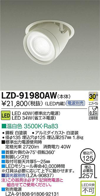 ¢£¼ó¿¶ÊÒ¦¤Î¤ß75¡ë¡¦²óž360¡ë|¢£À©¸æ¥ì¥ó¥ºÉÕ|¢£¼èÉÕ²Äǽŷ°æ¸ü5¡Á25mm|¢£LED¥â¥¸¥å¡¼¥ë¼÷Ì¿40¡¤000»þ´Ö|¢¨Åô¶ñ¤ÏɬÍפ˱þ¤¸¤Æ¾å²¼¤Ëư¤«¤»¤Þ¤¹¡£|¢£Ä´¸÷´ïÊÌÇä¡ÊLZA-90837¡Ë|Ãí¡Ë¤³¤Î´ï¶ñ¤Ïɬ¤º²¼µÊÌÇäÅŸ»¤ÈÁȹ礻¤Æ¤´»ÈÍѤ¯¤À¤µ¤¤¡£|¢£ÊÌÇäÅŸ»¡¡LZA-91808¡¦91806¡¦92131|¢£É¸½à½ÐÎÏÅŸ»»ÈÍÑ»þ¡¡Äê³Ê¸÷« 2720lm¡¡¾ÃÈñÅÅÎÏ 40W|Ra83