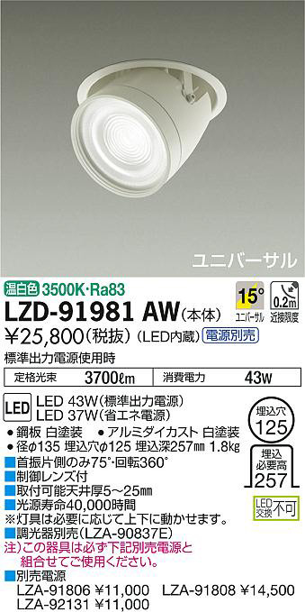 DAIKO Âç¸÷Åŵ¡ ¥æ¥Ë¥Ð¡¼¥µ¥ë¥À¥¦¥ó¥é¥¤¥È LZD-91981AW