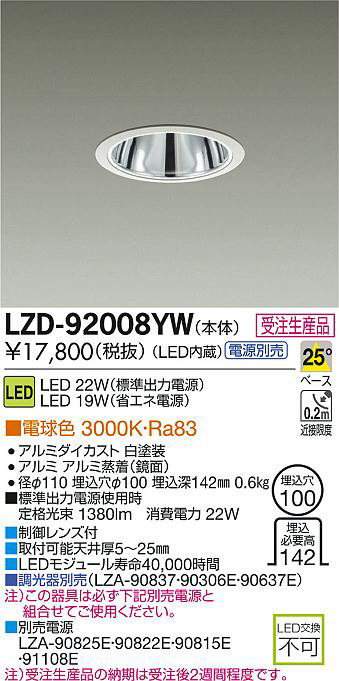 ¢£À©¸æ¥ì¥ó¥ºÉÕ|¢£¼èÉÕ²Äǽŷ°æ¸ü5¡Á25mm|¢£LED¥â¥¸¥å¡¼¥ë¼÷Ì¿40¡¤000»þ´Ö|¢£Ä´¸÷´ïÊÌÇä¡ÊLZA-90837¡¦90306E¡¦90637E¡Ë|Ãí¡Ë¤³¤Î´ï¶ñ¤Ïɬ¤º²¼µÊÌÇäÅŸ»¤ÈÁȹ礻¤Æ¤´»ÈÍѤ¯¤À¤µ¤¤¡£|¢£ÊÌÇäÅŸ»¡¡LZA-90825E¡¦90822E¡¦90815E¡¡¡¦91108E|Ãí¡Ë¼õÃíÀ¸»ºÉʤÎǼ´ü¤Ï¼õÃí¸å2½µ´ÖÄøÅ٤Ǥ¹¡£|¢£É¸½à½ÐÎÏÅŸ»»ÈÍÑ»þ¡¡Äê³Ê¸÷« 1380lm¡¡¾ÃÈñÅÅÎÏ 22W|Ra83