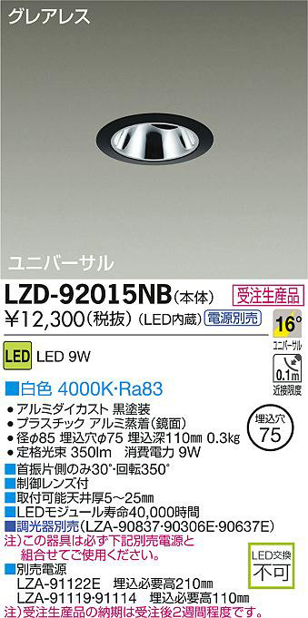 ¢£¼ó¿¶ÊÒ¦¤Î¤ß30¡ë¡¦²óž350¡ë|¢£À©¸æ¥ì¥ó¥ºÉÕ|¢£¼èÉÕ²Äǽŷ°æ¸ü5¡Á25mm|¢£LED¥â¥¸¥å¡¼¥ë¼÷Ì¿40¡¤000»þ´Ö|¢£Ä´¸÷´ïÊÌÇä¡ÊLZA-90837¡¦90306E¡¦90637E¡Ë|Ãí¡Ë¤³¤Î´ï¶ñ¤Ïɬ¤º²¼µÊÌÇäÅŸ»¤ÈÁȹ礻¤Æ¤´»ÈÍѤ¯¤À¤µ¤¤¡£|¢£ÊÌÇäÅŸ»¡¡LZA-91122E¡¡Ëä¹þɬÍ×¹â210mm¡¡LZA-91119¡¦91114¡¡Ëä¹þɬÍ×¹â110mm|Ãí¡Ë¼õÃíÀ¸»ºÉʤÎǼ´ü¤Ï¼õÃí¸å£²½µ´ÖÄøÅ٤Ǥ¹¡£|Äê³Ê¸÷« 350lm¡¡¾ÃÈñÅÅÎÏ 9W|Ra83