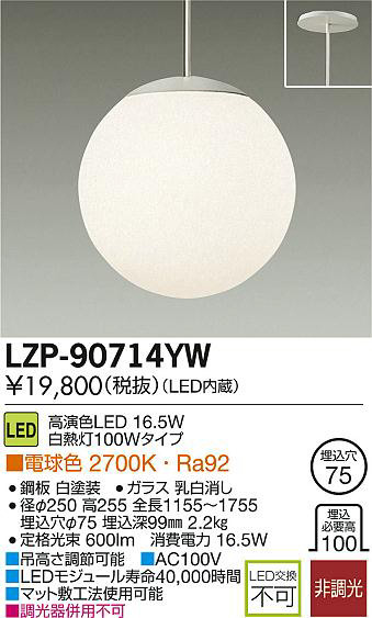 DAIKO Âç¸÷Åŵ¡ LED¥Ú¥ó¥À¥ó¥È LZP-90714YW