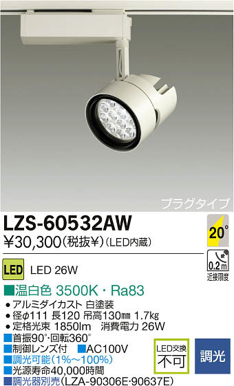 DAIKO Âç¸÷Åŵ¡ LED¥¹¥Ý¥Ã¥È¥é¥¤¥È LZS-60532AW