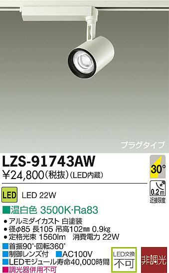 DAIKO Âç¸÷Åŵ¡ LED¥¹¥Ý¥Ã¥È¥é¥¤¥È LZS-91743AW