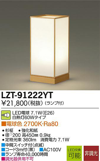 DAIKO Âç¸÷Åŵ¡ LED¥¹¥¿¥ó¥É LZT-91222YT