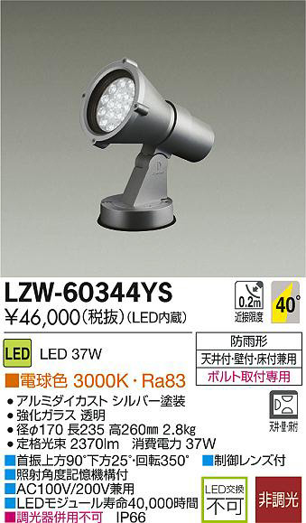 DAIKO Âç¸÷Åŵ¡ LED¥¢¥¦¥È¥É¥¢¥¹¥Ý¥Ã¥È¥é¥¤¥È LZW-60344YS
