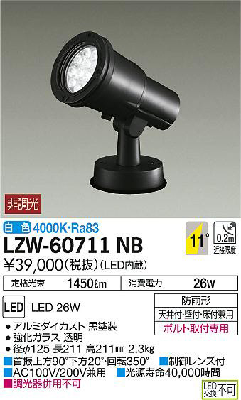 DAIKO Âç¸÷Åŵ¡ ¥¢¥¦¥È¥É¥¢¥¹¥Ý¥Ã¥È¥é¥¤¥È LZW-60711NB