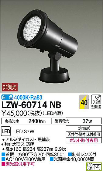 DAIKO Âç¸÷Åŵ¡ ¥¢¥¦¥È¥É¥¢¥¹¥Ý¥Ã¥È¥é¥¤¥È LZW-60714NB