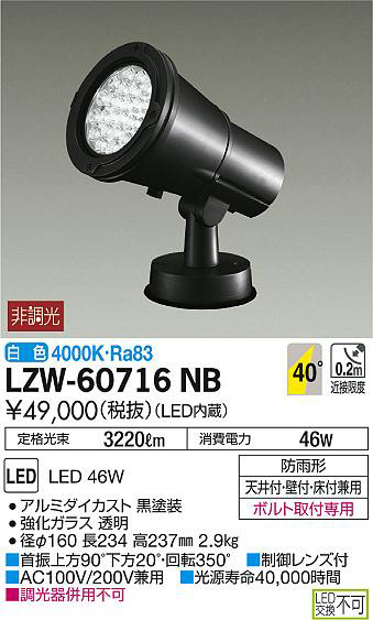 DAIKO Âç¸÷Åŵ¡ ¥¢¥¦¥È¥É¥¢¥¹¥Ý¥Ã¥È¥é¥¤¥È LZW-60716NB