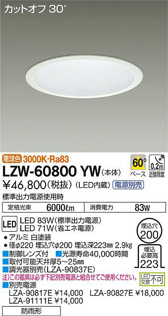 ¢£ÊÌÇäÅŸ»¡¡LZA-90817E ¡ï14¡¤000¡¡LZA-90827E ¡ï18¡¤000¡¡LZA-91111E ¡ï14¡¤000¡¢É¸½à½ÐÎÏÅŸ»»ÈÍÑ»þ Äê³Ê¸÷« 6000lm ¾ÃÈñÅÅÎÏ 83W¡¢Ra83