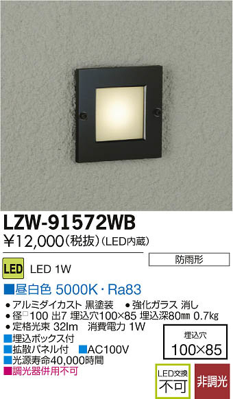 DAIKO Âç¸÷Åŵ¡ LED¥¢¥¦¥È¥É¥¢¥Õ¥Ã¥È¥é¥¤¥È LZW-91572WB