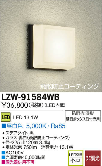 DAIKO Âç¸÷Åŵ¡ LEDÍá¼¼Åô LZW-91584WB