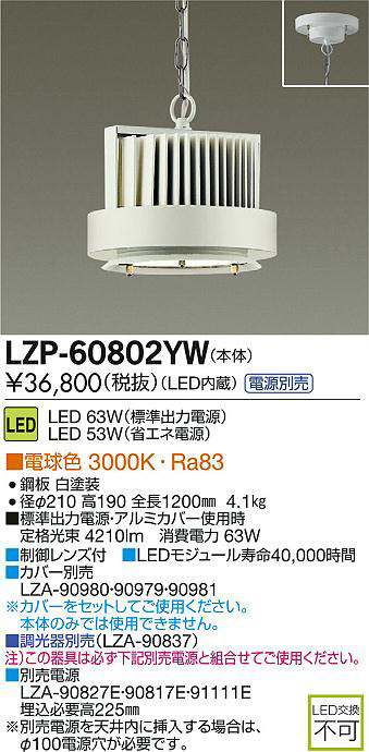 DAIKO Âç¸÷Åŵ¡ LED¥Ñ¥ï¡¼¥Ú¥ó¥À¥ó¥ÈÅô¶ñ LZP-60802YW
