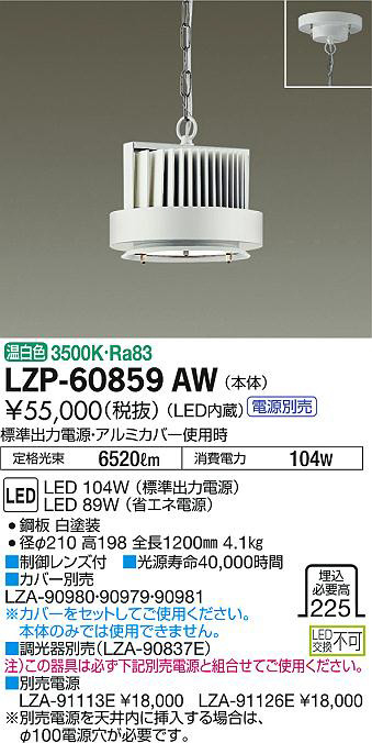 ¢£ÊÌÇäÅŸ»¡¡LZA-91113E ¡ï18¡¤000¡¡LZA-91126E ¡ï18¡¤000¢¨ÊÌÇäÅŸ»¤òÅ·°æÆâ¤ËÁÞÆþ¤¹¤ë¾ì¹ç¤Ï¡¢¦Õ100ÅŸ»·ê¤¬É¬ÍפǤ¹¡£¡¢É¸½à½ÐÎÏÅŸ»¡¦¥¢¥ë¥ß¥«¥Ð¡¼»ÈÍÑ»þ Äê³Ê¸÷« 6520lm ¾ÃÈñÅÅÎÏ 104W¡¢Ra83