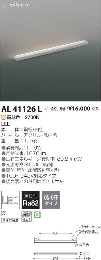 ¥³¥¤¥º¥ß¾ÈÌÀ KOIZUMI LED ´ÖÀܾÈÌÀ AL41126L