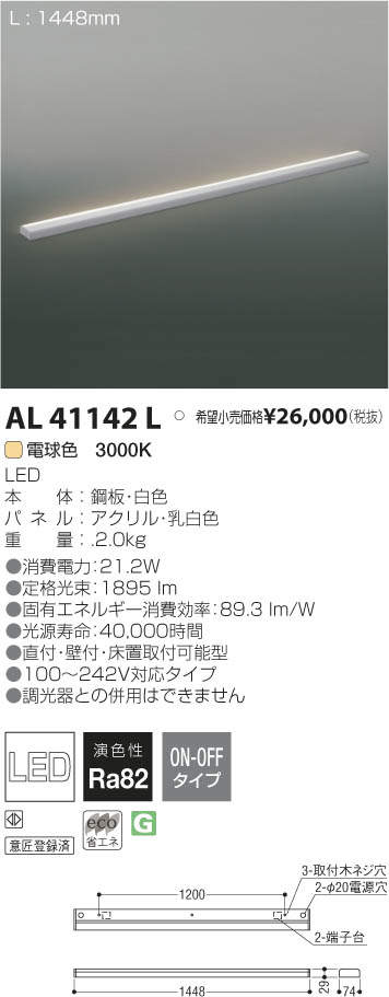 ¥³¥¤¥º¥ß¾ÈÌÀ KOIZUMI LED ´ÖÀܾÈÌÀ AL41142L