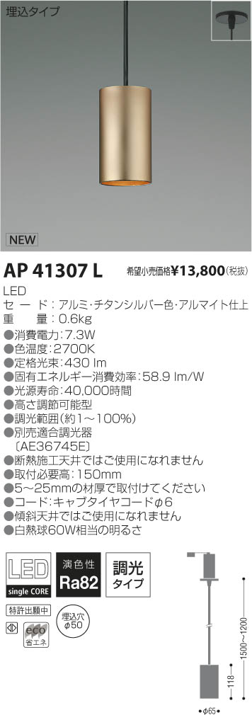 ¥³¥¤¥º¥ß¾ÈÌÀ KOIZUMI LED¥Ú¥ó¥À¥ó¥È AP41307L