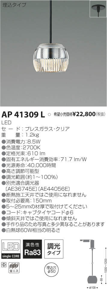 ¥³¥¤¥º¥ß¾ÈÌÀ KOIZUMI LED ¥Ú¥ó¥À¥ó¥È AP41309L