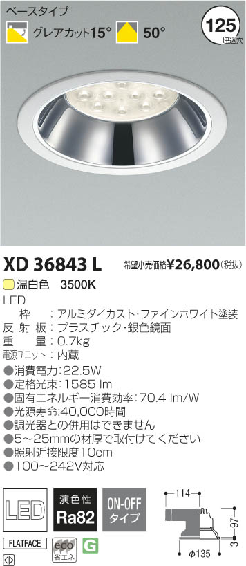 ¥³¥¤¥º¥ß¾ÈÌÀ KOIZUMI LED¥À¥¦¥ó¥é¥¤¥È XD36843L