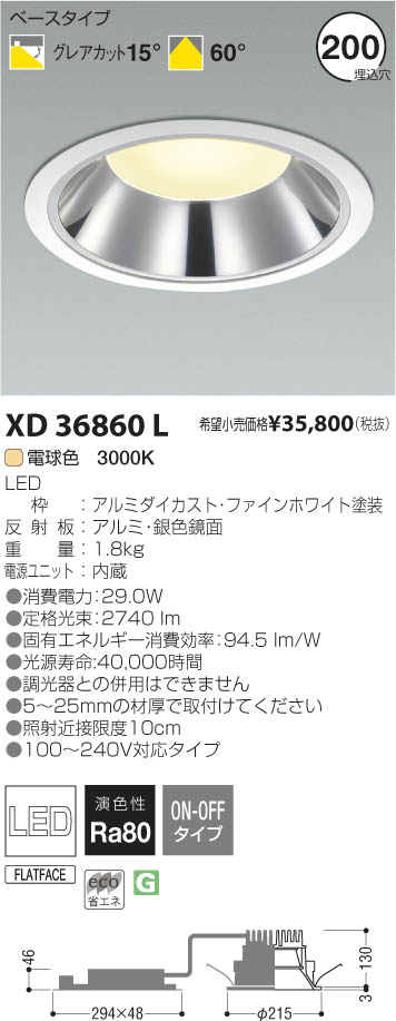 ¥³¥¤¥º¥ß¾ÈÌÀ KOIZUMI LED¥À¥¦¥ó¥é¥¤¥È XD36860L