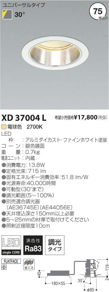 ¥³¥¤¥º¥ß¾ÈÌÀ KOIZUMI LED¥æ¥Ë¥Ð¡¼¥µ¥ë¥À¥¦¥ó¥é¥¤¥È XD37004L