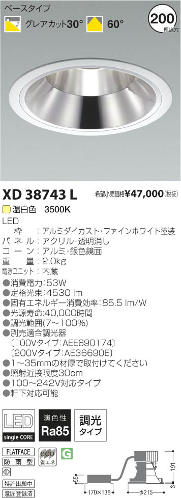 ¥³¥¤¥º¥ß¾ÈÌÀ KOIZUMI LED¥À¥¦¥ó¥é¥¤¥È XD38743L