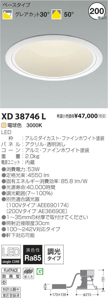 ¥³¥¤¥º¥ß¾ÈÌÀ KOIZUMI LED¥À¥¦¥ó¥é¥¤¥È XD38746L
