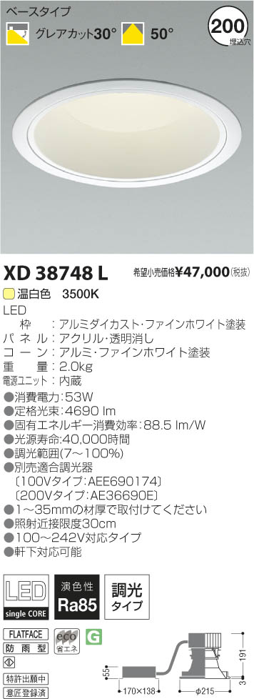 ¥³¥¤¥º¥ß¾ÈÌÀ KOIZUMI LED¥À¥¦¥ó¥é¥¤¥È XD38748L