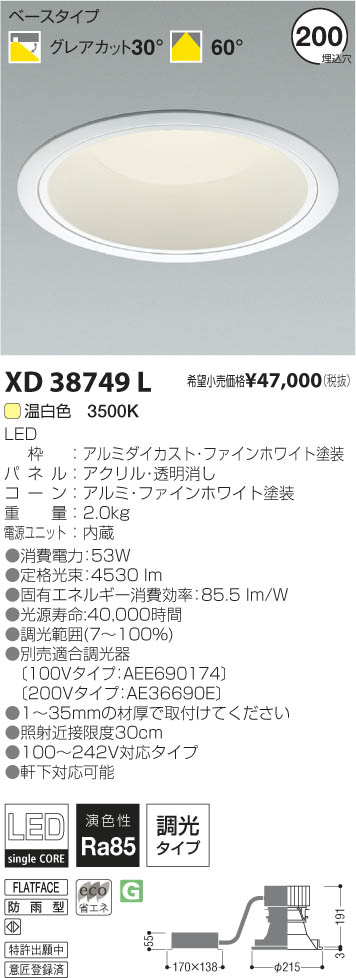 ¥³¥¤¥º¥ß¾ÈÌÀ KOIZUMI LED¥À¥¦¥ó¥é¥¤¥È XD38749L