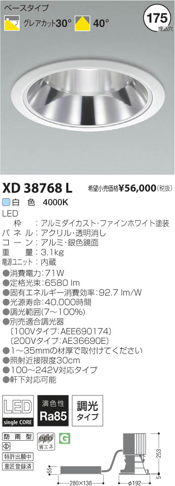 ¥³¥¤¥º¥ß¾ÈÌÀ KOIZUMI LED¥À¥¦¥ó¥é¥¤¥È XD38768L