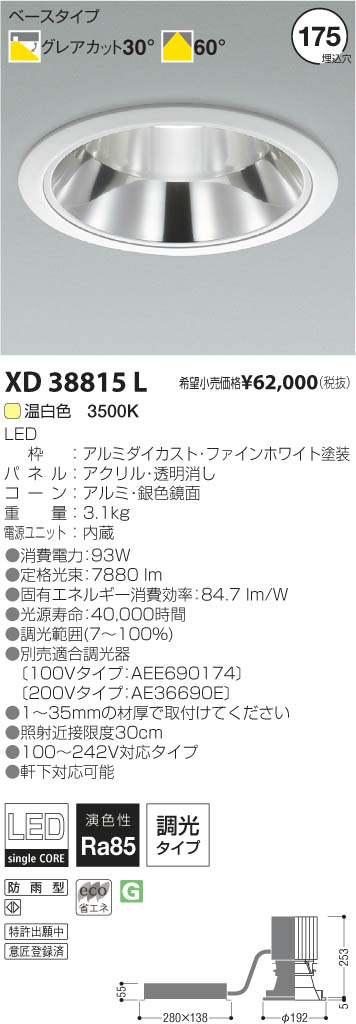 ¥³¥¤¥º¥ß¾ÈÌÀ KOIZUMI LED¥À¥¦¥ó¥é¥¤¥È XD38815L
