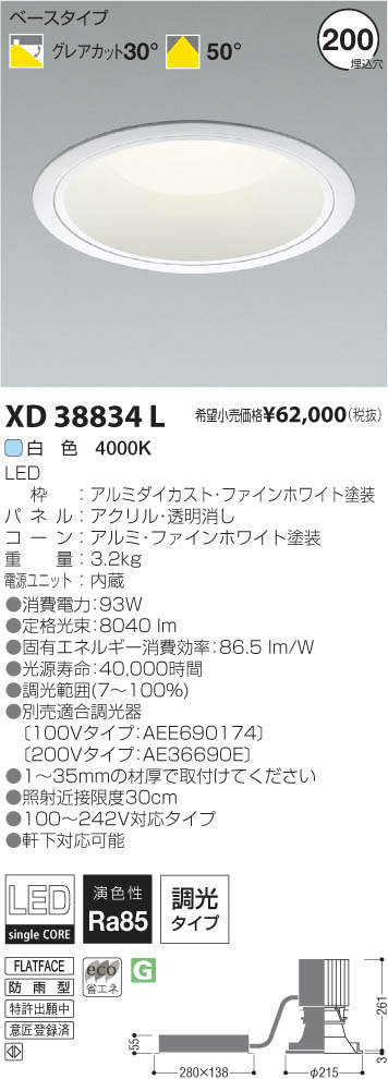 ¥³¥¤¥º¥ß¾ÈÌÀ KOIZUMI LED¥À¥¦¥ó¥é¥¤¥È XD38834L