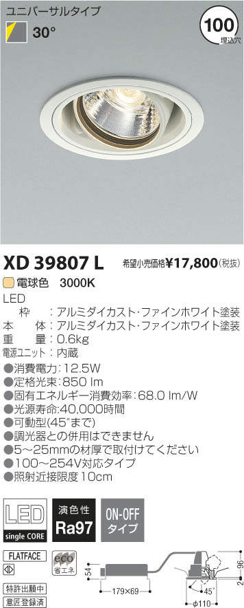 ¥³¥¤¥º¥ß¾ÈÌÀ KOIZUMI LED¥æ¥Ë¥Ð¡¼¥µ¥ë¥À¥¦¥ó¥é¥¤¥È XD39807L