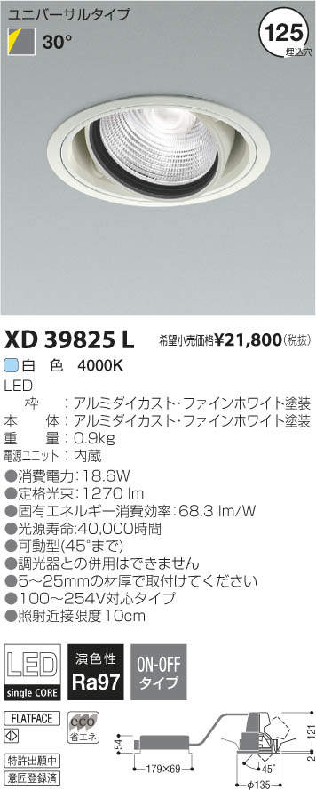 ¥³¥¤¥º¥ß¾ÈÌÀ KOIZUMI LED¥æ¥Ë¥Ð¡¼¥µ¥ë¥À¥¦¥ó¥é¥¤¥È XD39825L